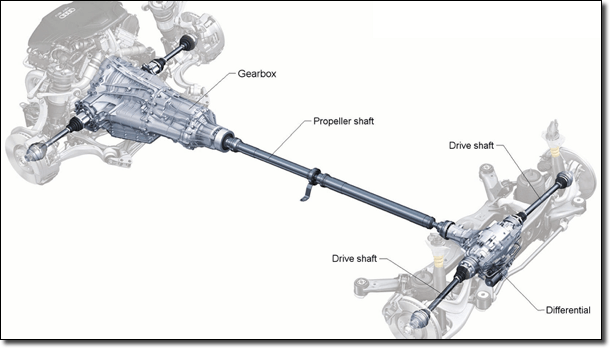 In a front-wheel drive vehicle, the power is transmitted from the engine through a combination transmission-differential and then directly to the front wheels.